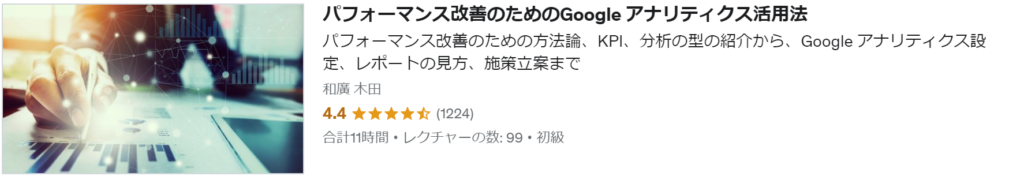 Webサイトのパフォーマンスを改善するフレームワーク(=方法論)の理解、Google アナリティクスのレポートの読み取りとアクションへの落とし込み、KGIとKPIの違いの理解、自社サイトのサイト類型と代表的なKPI例、実施した施策の効果測定、マルチチャネル・アトリビューションといった複数チャネルの効果測定、Google Analytics Individual Qualification(GAIQ)に合格するレベルのGoogle アナリティクスに関する知識を学べるコースです。
