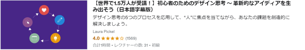 デザイン思考の5つのプロセスを組織や職場の課題解決に応用します。インタビューやインタビュー対象者の観察を通じてユーザーに共感し寄り添う、インタビュー相手と共感する中で集めた情報をまとめ・分析することで中核となる課題を定義する、「どうすれば…(How might we…)」という質問を通して解決策のアイディア出しのブレインストーミングを行う、課題に対する最善の解決策を特定するためにプロトタイプを作る、プロトタイプに対するフィードバックを得るためにテストを行う、仲間や組織にデザイン思考を共有・説得するためにストーリーテリングを用いる等を学ぶコースです。
