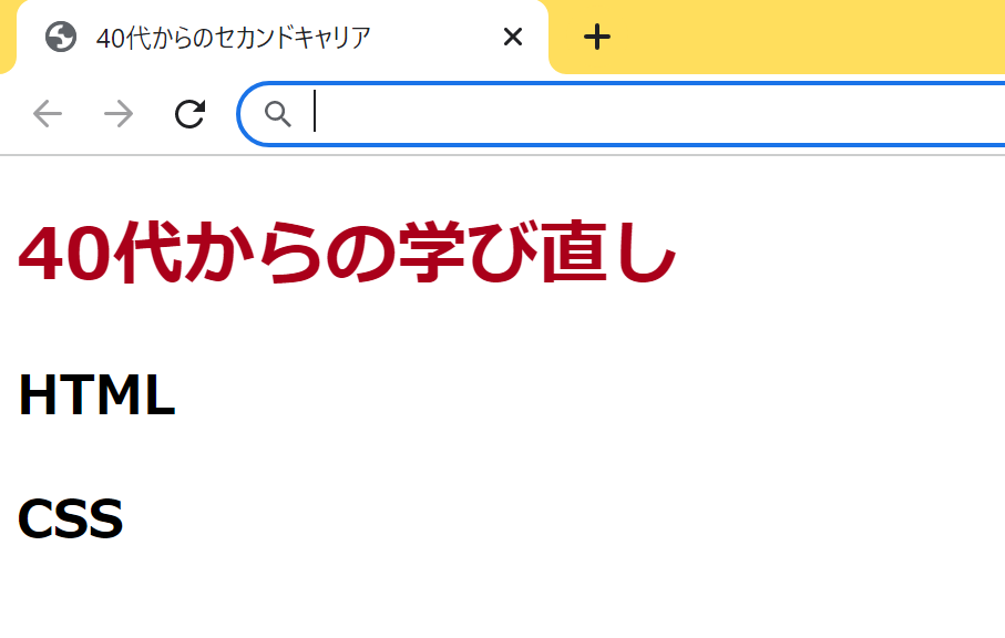 ここではHTMLとはどのようなものかを実際に見てみましょう。複雑なWebサイトではなく、以下のような簡単な文字をブラウザ上に表示してみました。