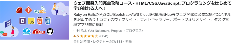 HTML/CSSやJavascriptの学びを深めたい方は以下のUdemy講座がわかりやすくておすすめです。